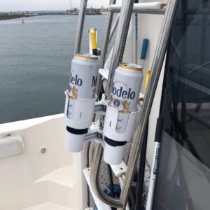 • ROBOCUP PORTÁTIL CON PATENTE: (Blanco) Soporte de copas para barco con abrazadera diseñado para sujetar de manera segura 2 bebidas, tazas, cañas de pescar, varillas, herramientas, equipo marino, aparejos de pesca, teléfono, llaves, anteojos, linterna, GPS y más. Perfecto para barcos, carros de golf, cochecitos, sombrillas de playa, camping y lugar de trabajo. Mantén tu hidratación y organiza tus objetos esenciales al alcance de la mano dondequiera que vayas.